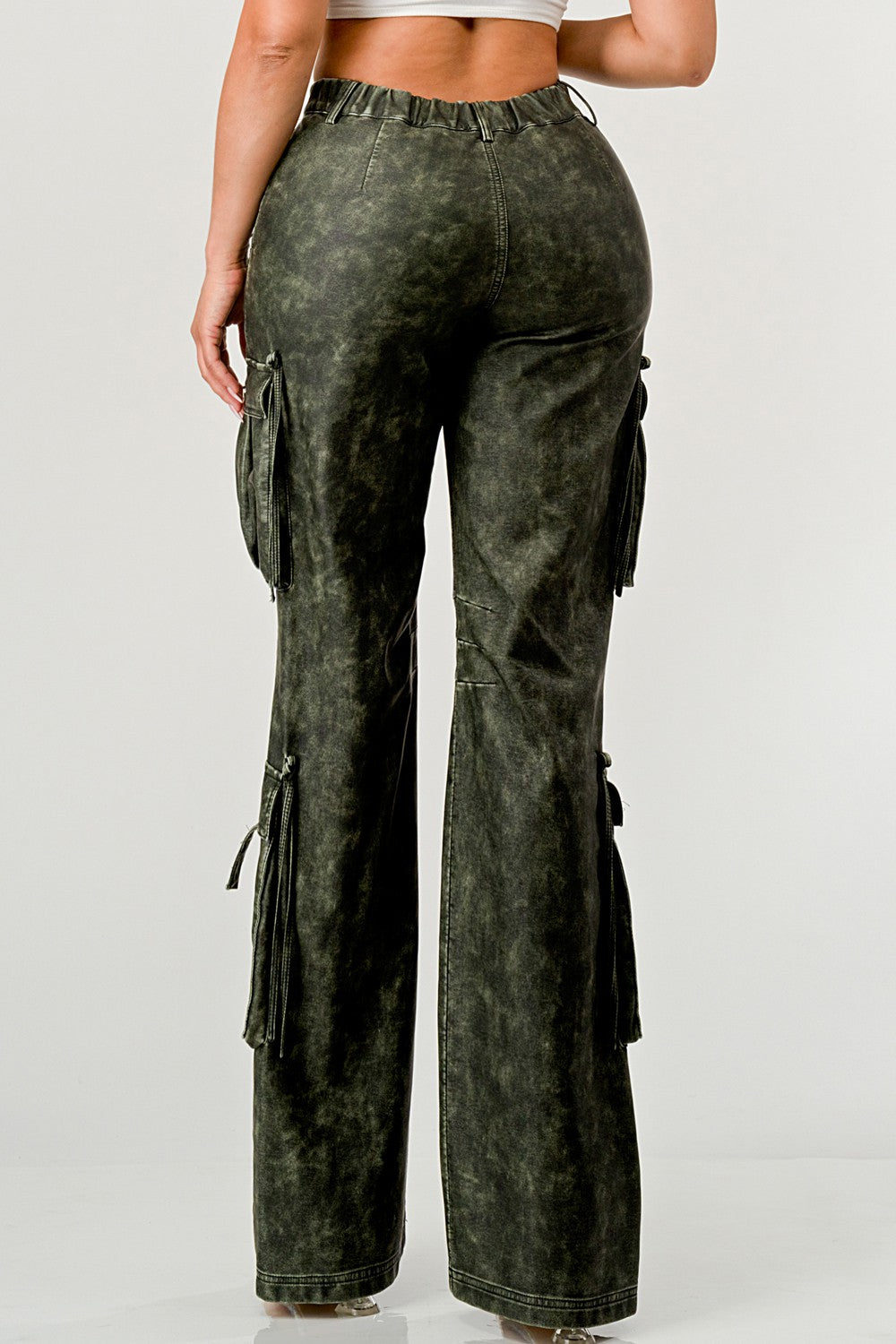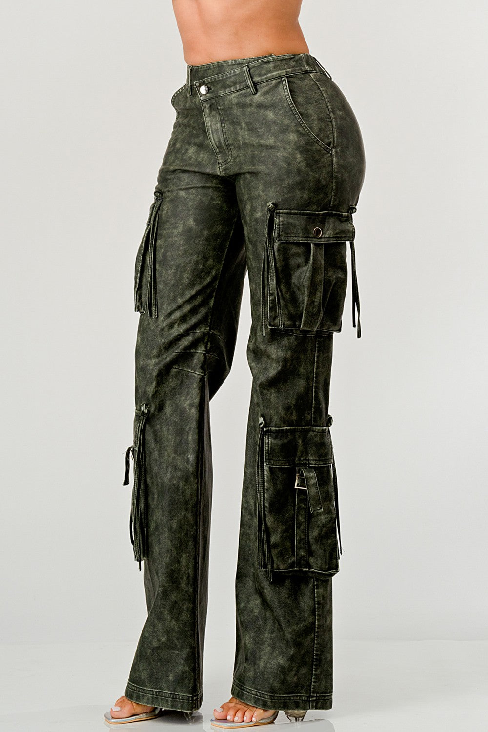 Olive Leather Big Cargo Pants